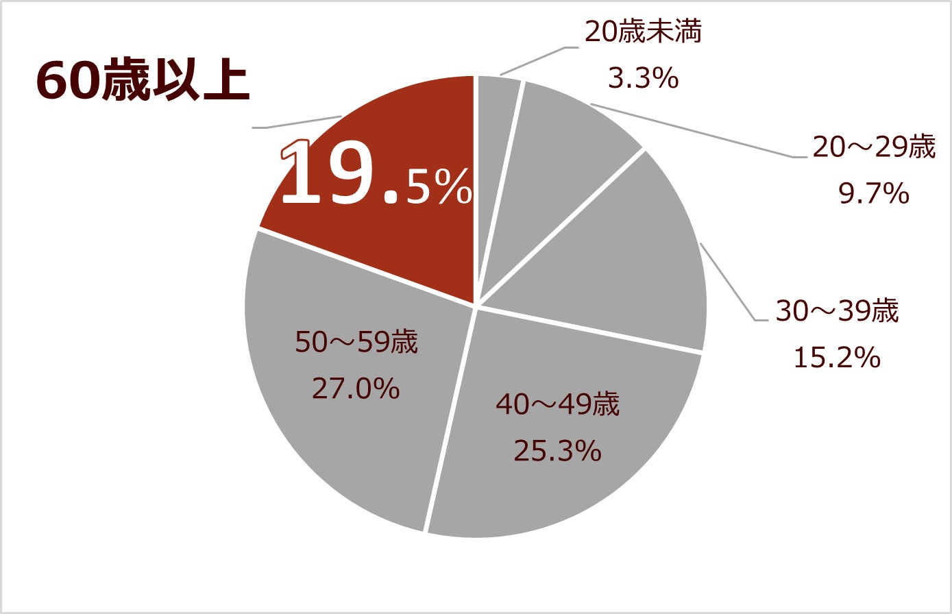 保全業務に携わる従業員の年齢構成を調査したところ、60歳以上が全体の約2割を占めました。これは、技術伝承に必要な期間とされる5年以内に定年退職を迎える熟練者が約2割存在することを意味します。技術伝承に5年以上の期間が必要であることを考慮すると、引き継ぎが完了する前に熟練者がいなくなる危機的状況に直面する可能性が高いといえます。
