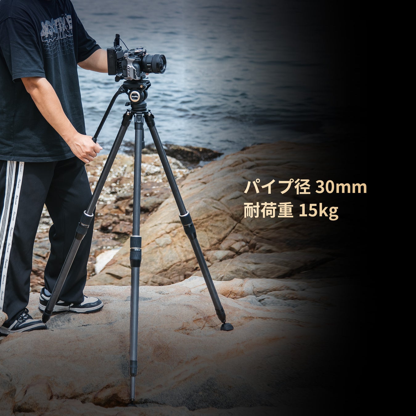 30mmのパイプ径と耐久性に優れたカーボンファイバー素材により、安定性と耐荷重性を損なうことなく軽量設計を実現しています。