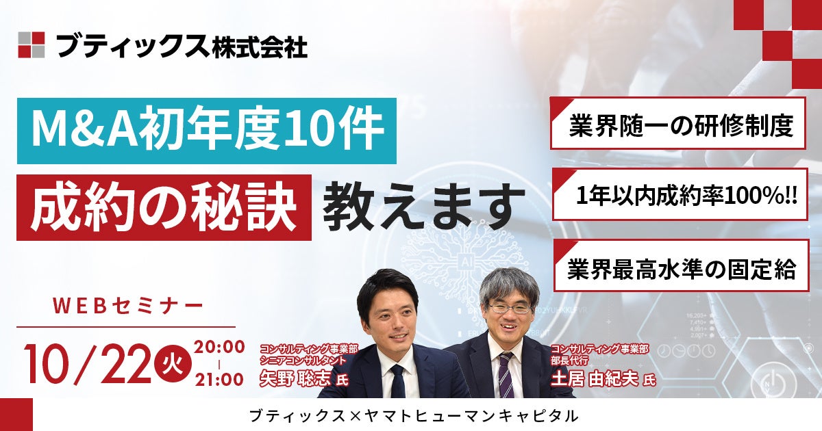 【10/22開催】M&A初年度10件成約の秘訣教えます!| ブティックス