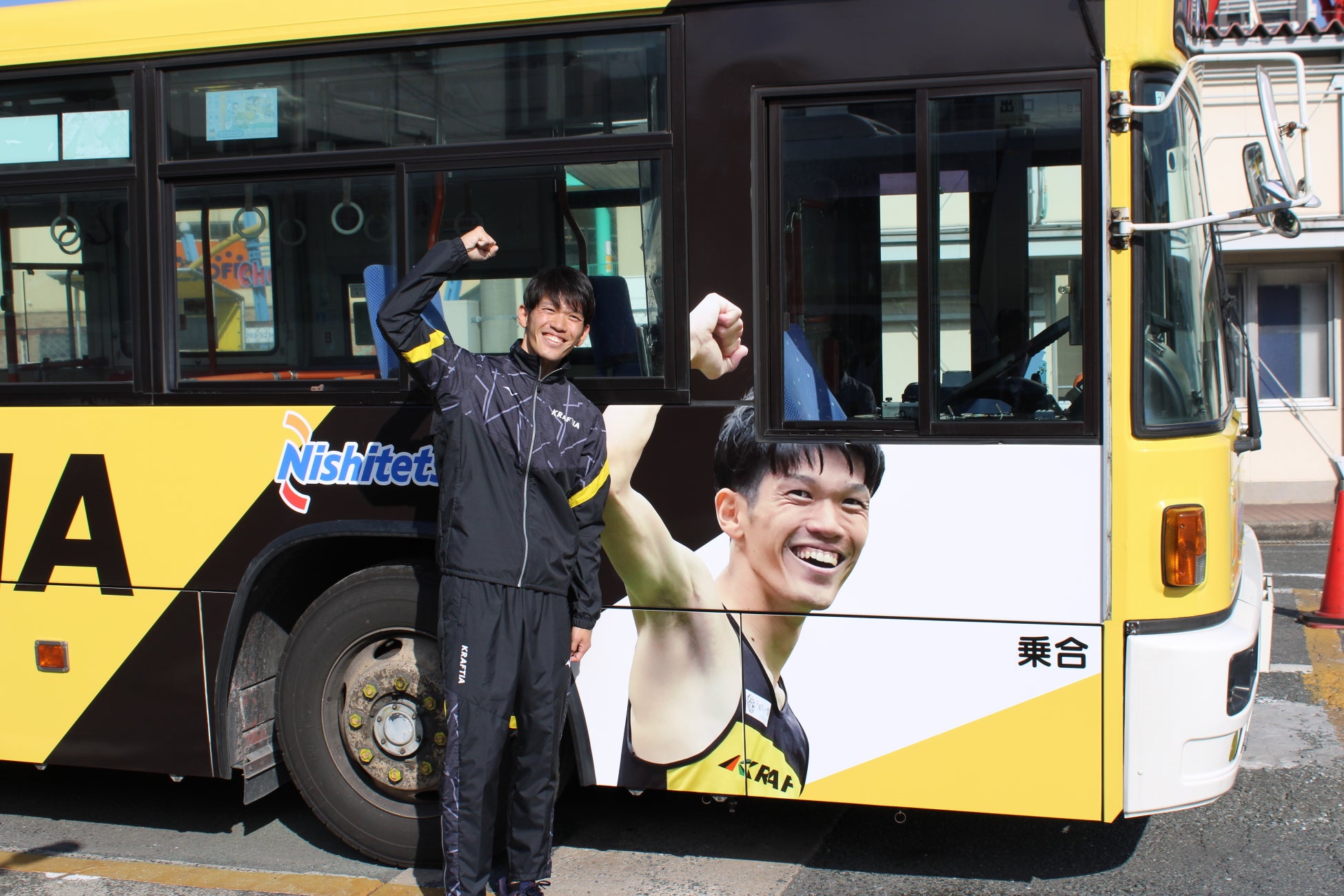 当社陸上競技部選手を起用したラッピングバスが運行を開始しました