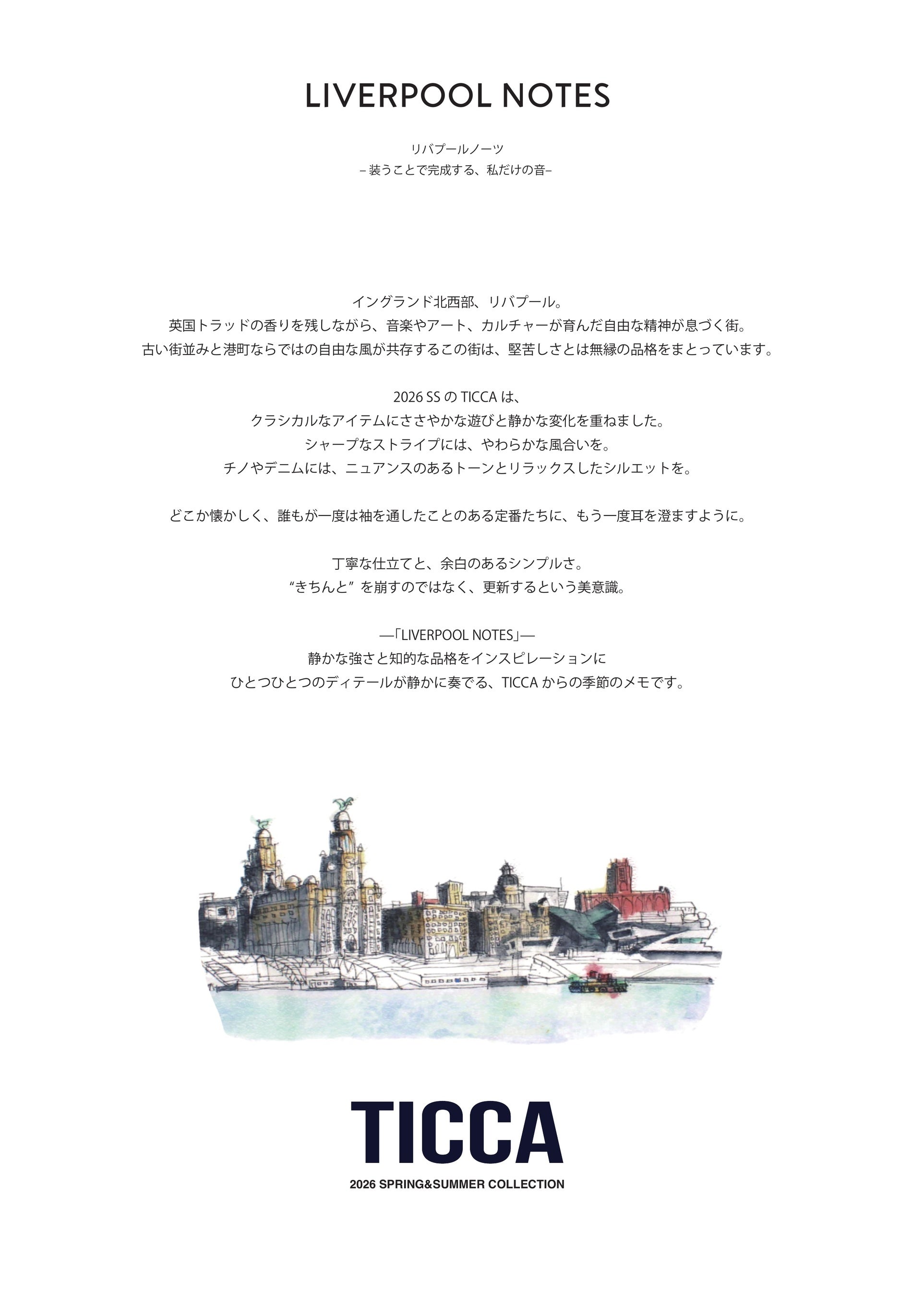【TICCA】26SS新作、LIVERPOOL NOTES ~リバプールノーツ 装うことで完成する、私だけの音 ~<TICCA公式オンラインストア><TICCA東京><TICCA金沢>で順次、展開中