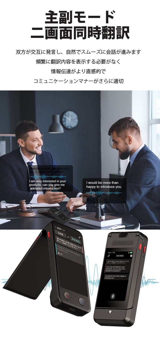 AI翻訳器革命!144言語対応、デュアルスクリーンでリアルタイム共有、議事録作成 |