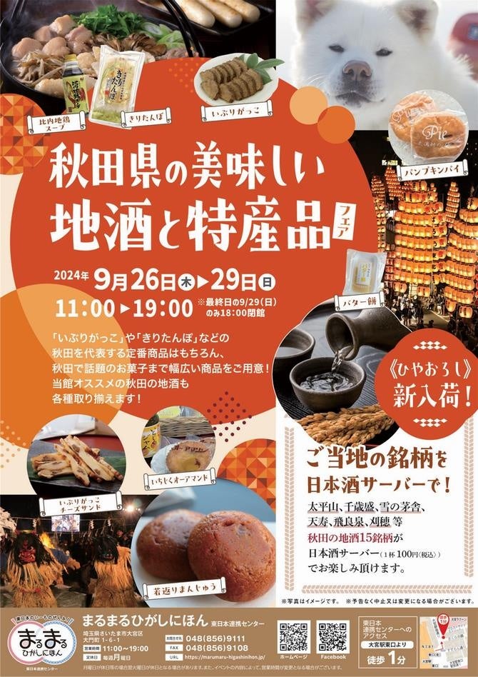 9/26(木)~29(日)の4日間限定イベント!まるまるひがしにほんで「秋田県の美味しい地酒と特産品フェア」を開催します!