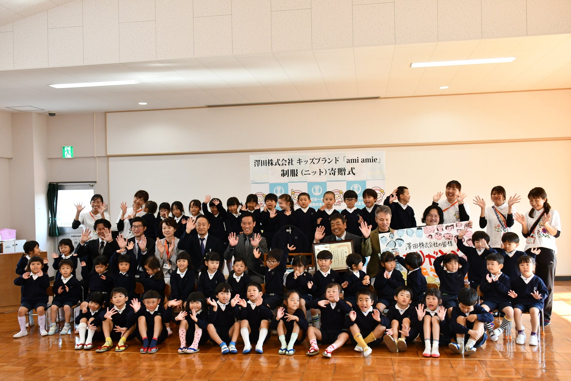 今回、寄贈いただいた制服(ニット)は、通気性・保温性・耐久性に優れた天然素材で作られており、今年の冬に本市の幼稚園・保育所の3歳~5歳児を対象にニットをワンシーズン着用していただき、保護者・子どもたちの意見・想いを反映させた制服(ニット)を開発します。共同開発した制服は令和8年度から本格的に導入していく予定です。