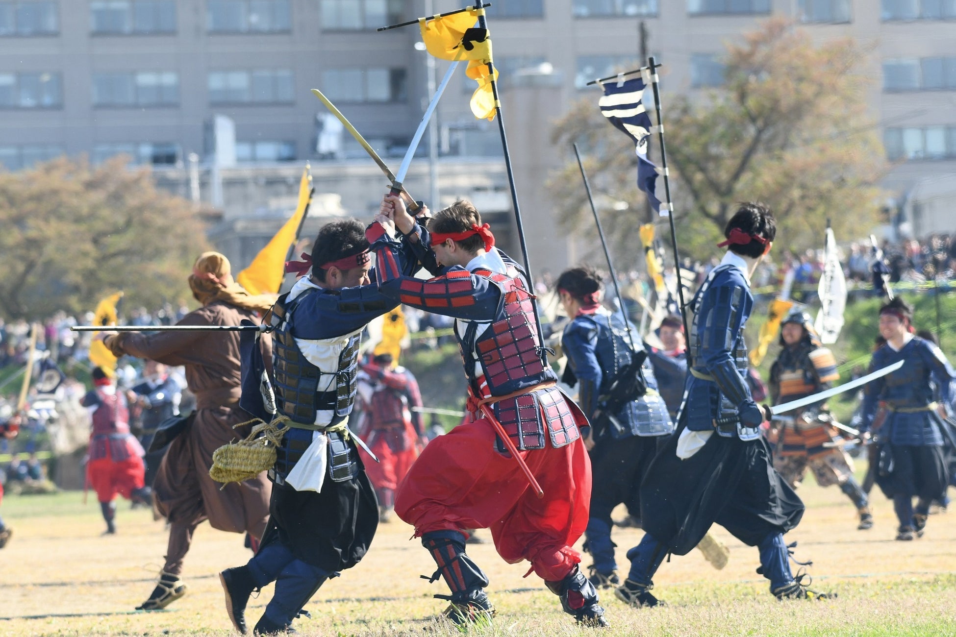 午後2時からは、戦国史上最大の死闘といわれた上杉軍と武田軍が激突する「川中島合戦」(永禄4年秋)が松川河川敷を会場に再現されます。