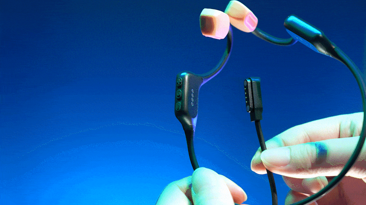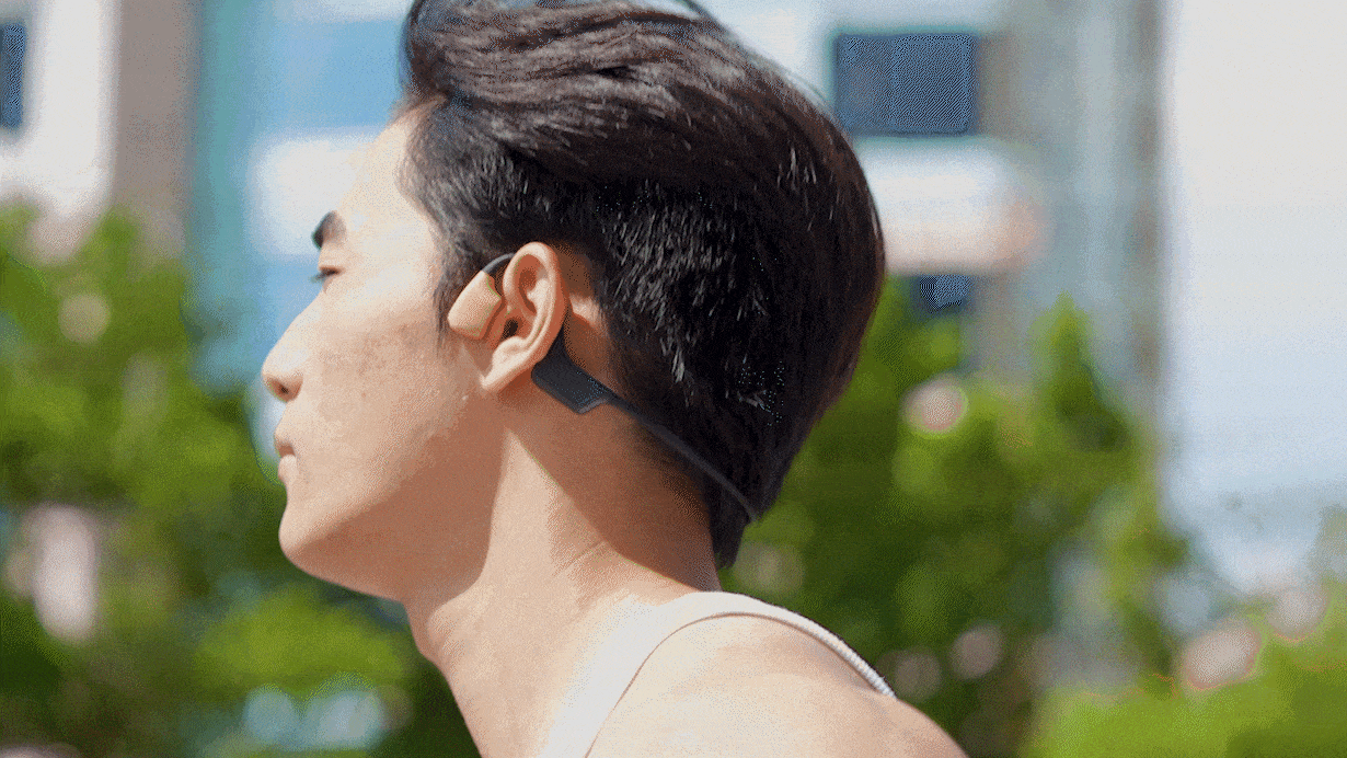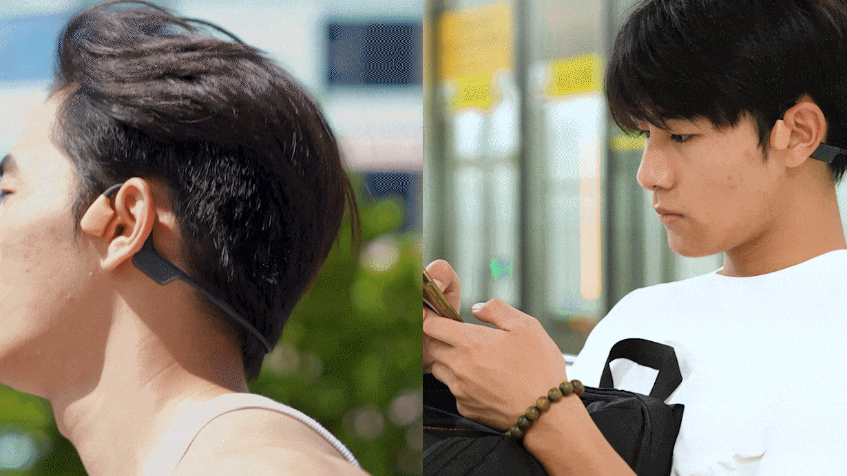 骨伝導スピーカーと空気伝導スピーカーを革命的に同時搭載、骨伝導の振動によるクリアな中高音域と、空気伝導の豊かな低音域を融合させ、まるでライブやコンサートの現場にいるような臨場感を演出。