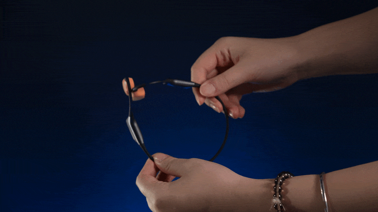 ワイヤレス接続により、有線イヤホンのように絡まることなく、音楽に集中できます。