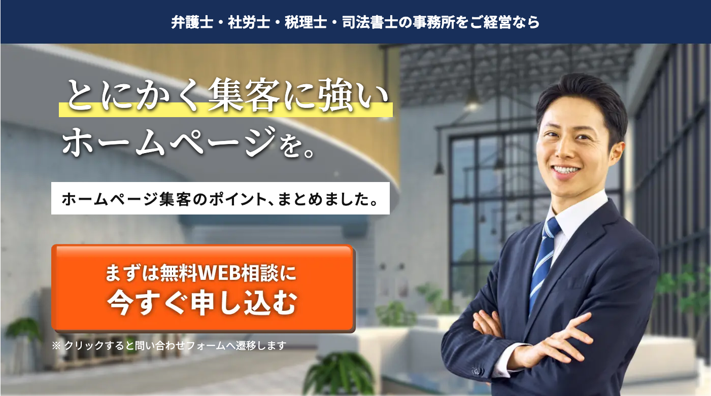 弁護士・社労士・税理士・司法書士向けに、信頼構築と集客を同時に叶えるホームページ戦略を無料相談で提案。
