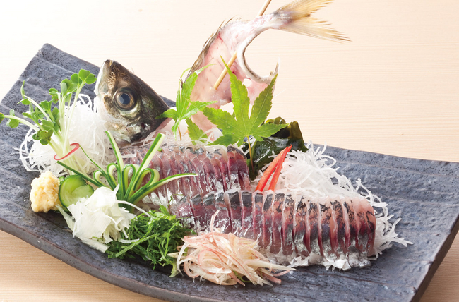 ■メニュー一例:辛味そば714円(大盛り1,029円)/鯵の姿造り609円/