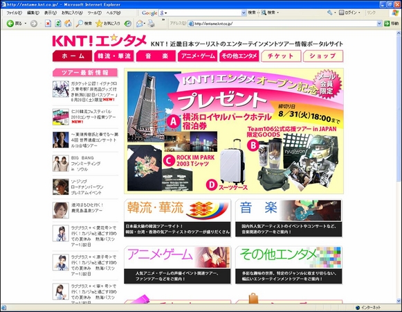 今まで企画されたエンタメ系のツアーは、KNTホームページの「旅コレクト」に掲載したり、ツアー毎に告知したりしていました。今回、韓流・華流ツアーを中心に、音楽、アニメ等々のファンイベントやアクセスツアーなど、KNTの全エンタメ関連ツアーのポータルサイトを目指し、「KNTエンタメ」サイトをオープンしました。エンタメに関するツアーの紹介、twitter、ブログなどを利用して新鮮な情報の発信、関連グッズの販売などを行っていきます。