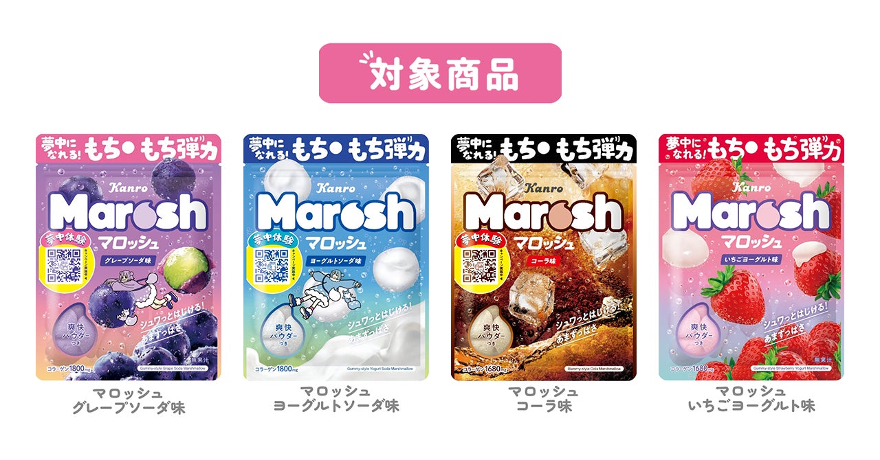※「マロッシュ グレープソーダ味」および「マロッシュ ヨーグルトソーダ味」のキャンペーンパッケージでの販売は終了しております