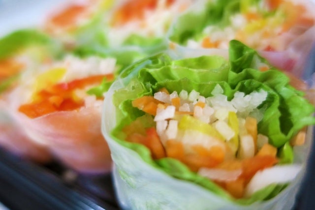 皆さんは「ライスペーパー」とは何かご存知でしょうか。「生春巻き」を思い浮かべた方は正解です。生春巻きの具を巻いている半透明の生地が「ライスペーパー」です。ベトナム発祥の食材で、米を薄いシート状に加工し乾燥させたものです。お店で売られている状態は硬い紙のようですが、使用する際は軽く水をつけて柔らかくした状態で具を巻くなどの調理をします。焼いたり揚げたりもできるので様々なメニューで使うことができます。