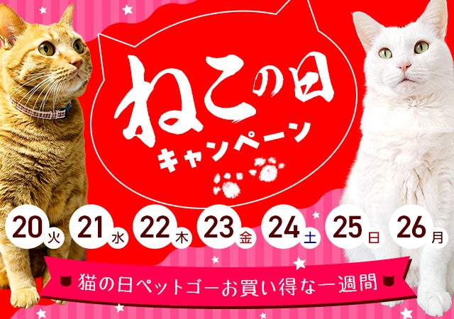 ペットゴー株式会社(本社:東京都中野区、代表取締役社長:黒澤弘、証券コード:7140、以下「当社」)が運営するペットヘルスケア通販サイト「ペットゴー(petgo.jp)」にて、毎年ご好評いただいている「ねこの日キャンペーン」を、本年も2月22日の「猫の日」に合わせて開催いたします。