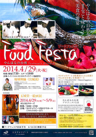 カヌチャリゾート(沖縄県名護市、代表取締役社長:白石武博)は、昨年もご好評いただいた「フードフェスタ~やんばるの台所~」を、4月29日(火)に開催いたします。