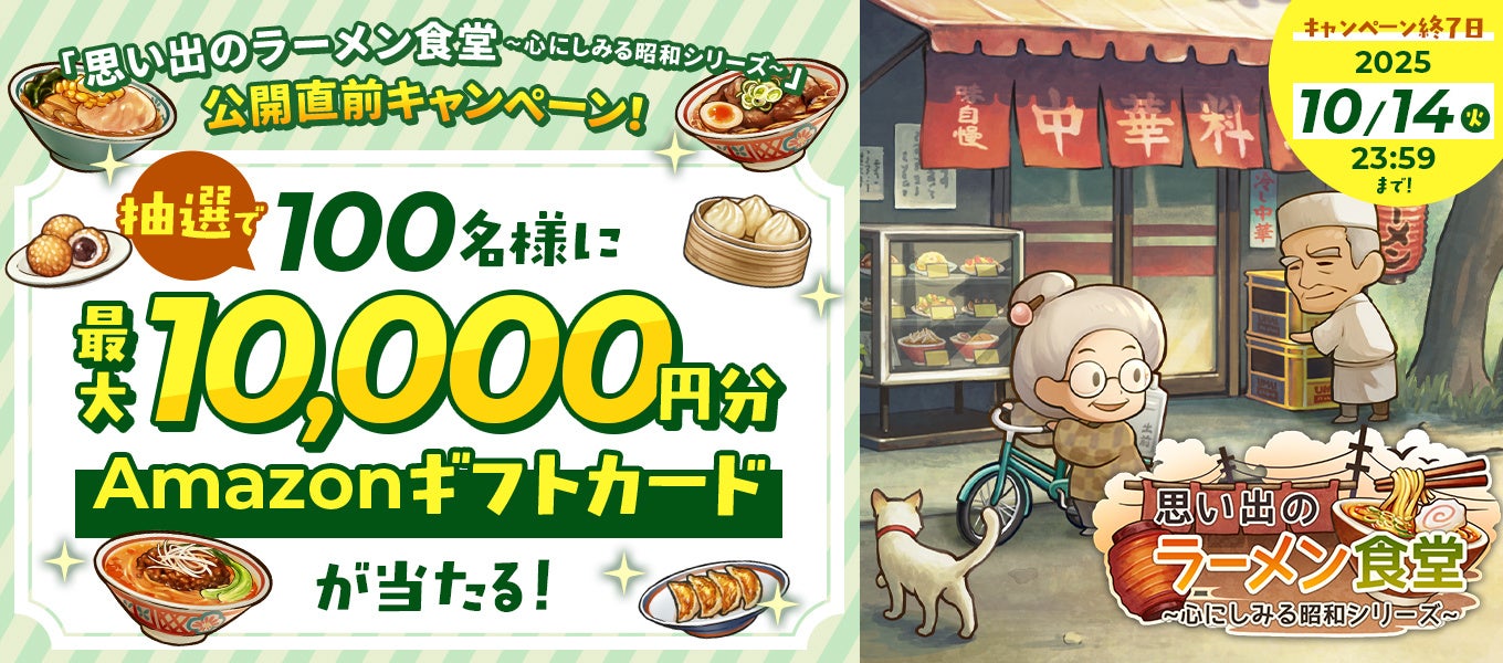 【Amazonギフトカードが当たる!】「思い出のラーメン食堂 ~心にしみる昭和シリーズ~」事前登録開始!抽選で100名様に最大1万円分のアマギフが当たるキャンペーンを開催!