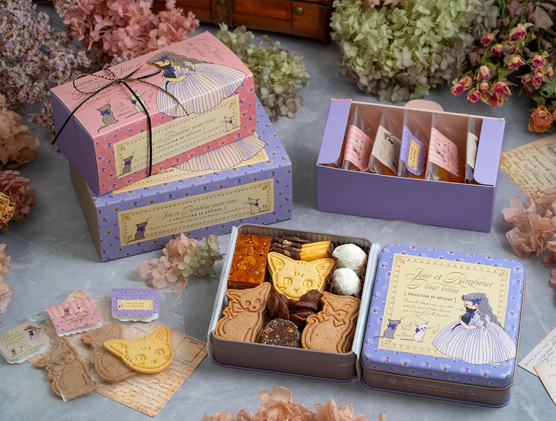 くらはしれいさんのイラストで、女の子とこねこが過ごす優しい時間をテーマにしています。スタンプクッキー型・ギフト箱・ギフト缶・ヘッダーシールが揃い、トータルでコーディネートができるのでバレンタインに適していますが、他のシーンでもプレゼントとして大変ご好評頂いています。是非お試しください。
