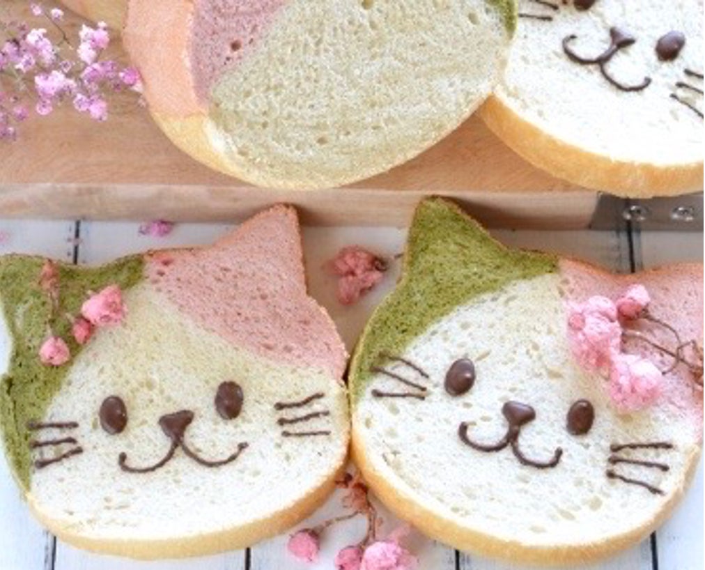 春にぴったりな桜と抹茶フレーバーのねこ食パン。