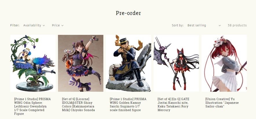 本サイトの特徴としては、「在庫商品」「予約販売商品」の他に、サイトに掲載されていない「リクエスト商品」を受け付け、在庫・許諾含め販売可否を確認後、販売いたします。