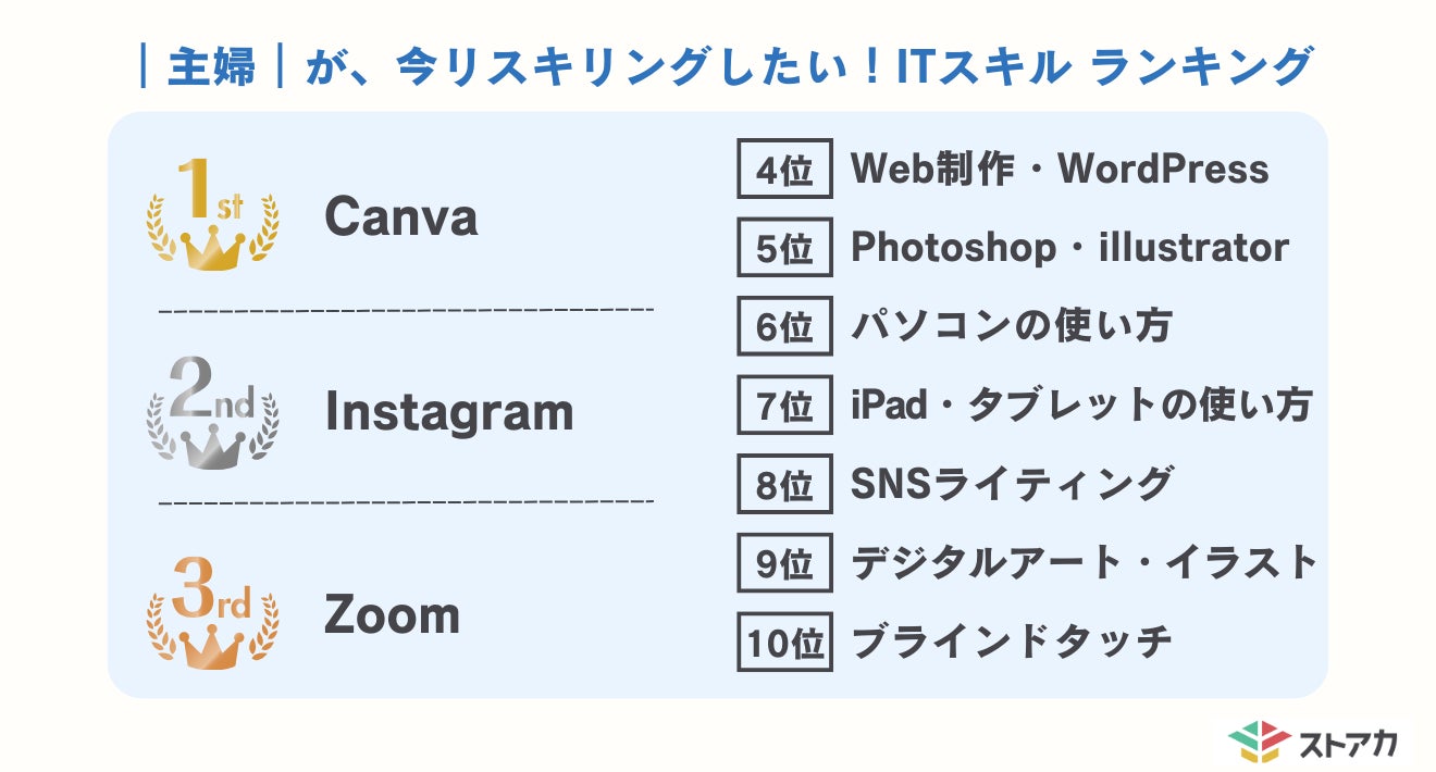 主婦がリスキリングしたいスキル第1位「Canva」、第2位「Instagram」学びたい理由は学んでいて楽しいから