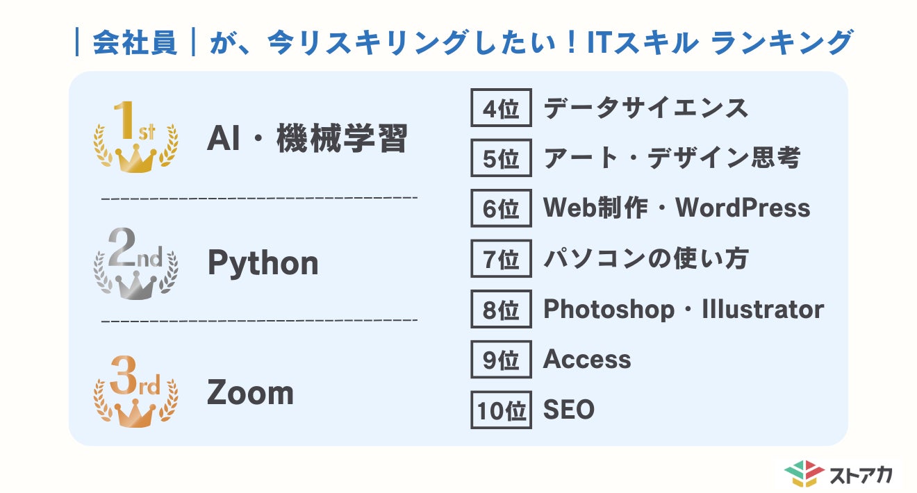 会社員がリスキリングしたいスキル第1位「AI・機械学習」、第2位「python」 学びたい理由は業務効率化でき、副業に活かせるから