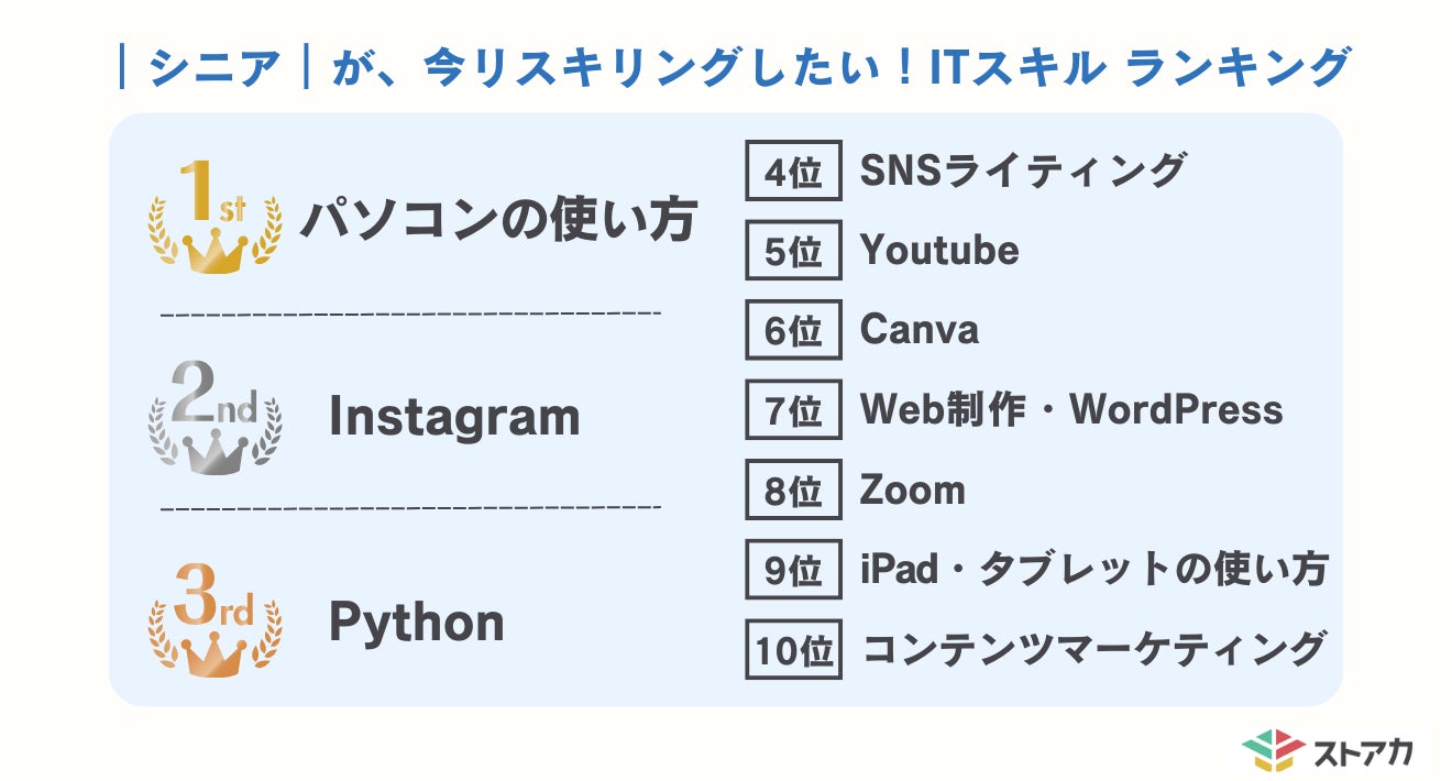 シニアがリスキリングしたいスキル第1位「パソコンの使い方」、第2位「Instagram」学びたい理由はこれからの時代に汎用性のあるスキルを身につけたいから