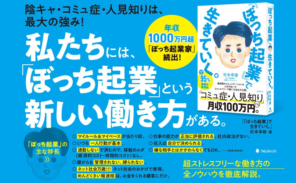 フォレスト出版株式会社(所在地:東京都新宿区、代表取締役:太田 宏)は、『「ぼっち起業」で生きていく。』(杉本幸雄・著)を2024年9月9日に発売いたします。