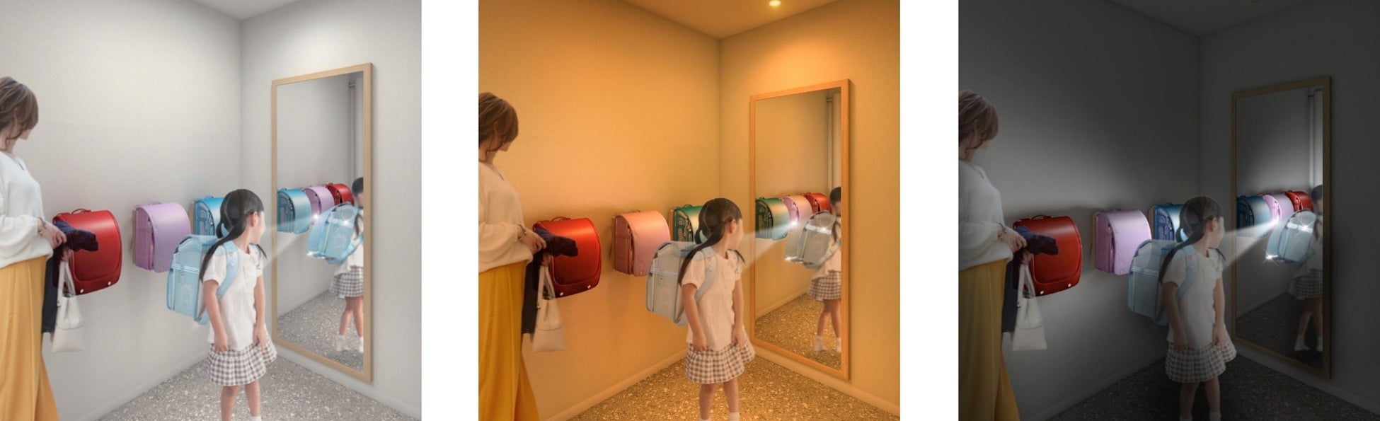 また、新たな「セイバン 福岡」には、これまでにはなかったフィッティングラボも導入。朝・昼・夕方・夜を再現できる照明器具がついており、より日常に近いランドセルのカラーをご覧いただけるようになりました。
