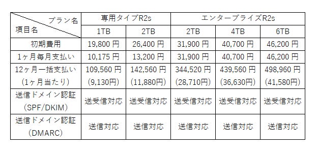 メールプラン 専用タイプR2s・エンタープライズR2s
