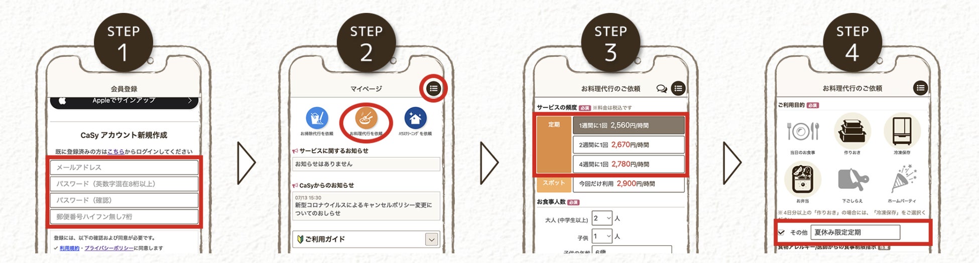 対象会員 :カジーのすべての登録会員 ※新しくカジーのお料理代行の定期サービスを依頼される方に限る
