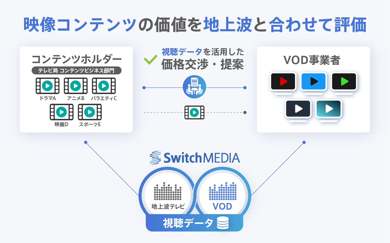 スイッチメディア、NetflixやAmazon Prime Video、TVerなどのVODサービスの視聴データ基盤を業界全体で整備する取り組みにおいて協賛企業を募集開始!