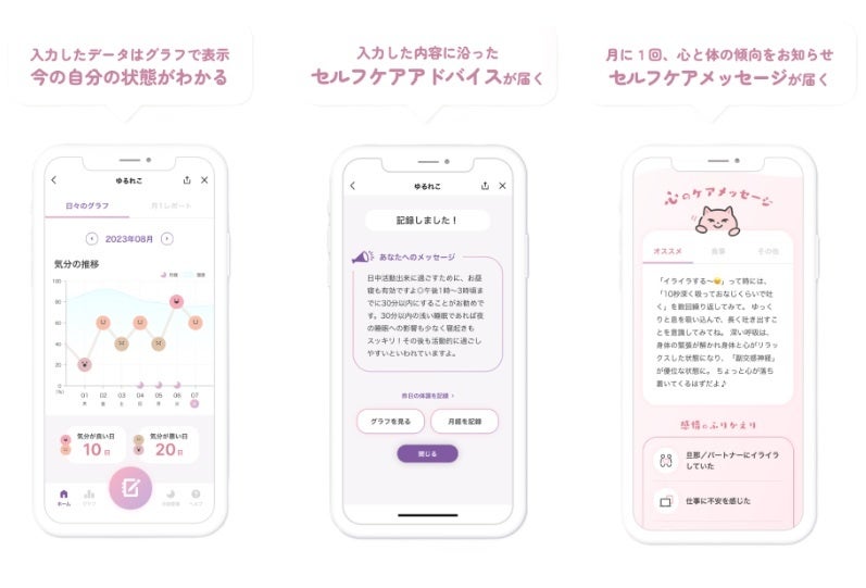 女性自身の不調改善サポートとして健康管理ツールを使った心と体の状態把握から適切なセルフケアの習慣化を促す。