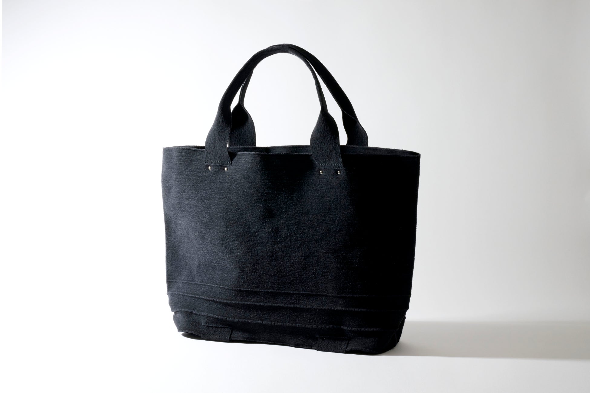 本体部を丸ごと無縫製ニットの機械で編み上げることで、縫い目が一切ない丈夫な構造となっています。持ち手も同素材で仕上げ、特徴的なユーズド感のある風合いをお楽しみ頂けます。中にはメッシュポケットが2つ付き、底マチが広くしっかり自立し、収納力にも優れています。