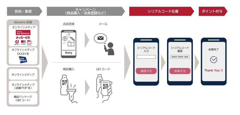 本サービスでは、最短で、キャンペーン参加直後にユーザーへのdポイント進呈が実現可能となり、またユーザーによるキャンペーン参加のための煩雑な入力作業も少なく参加障壁が低いのも特徴のため、販促キャンペーンにおけるユーザーエクスペリエンスの向上も期待できます。