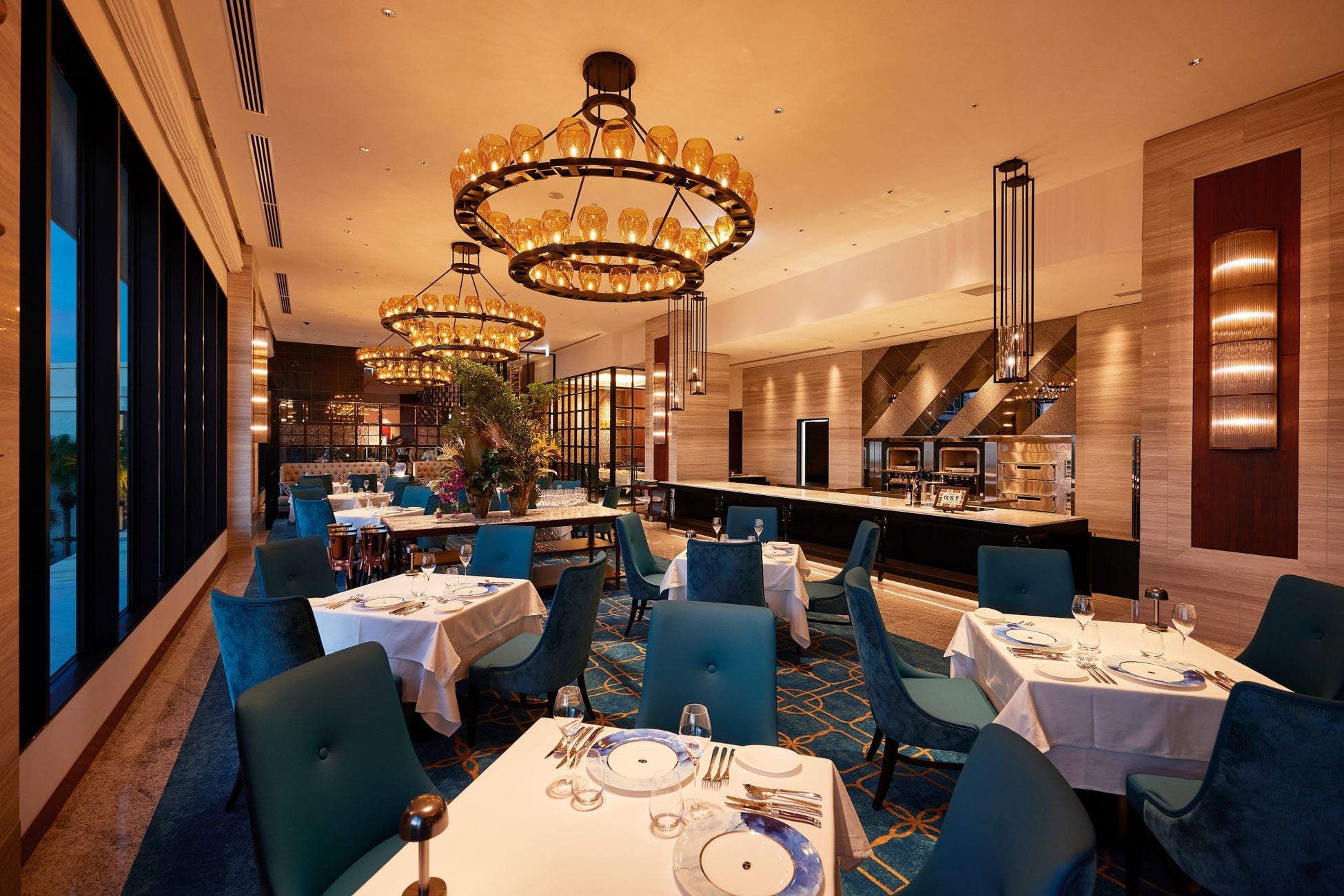 当ホテル最高のロケーションを誇るパノラマオーシャンビューの高級鉄板焼レストラン。シェフの手さばきを間近にご覧いただきながら、優雅にお食事をお楽しみ頂けます。全国から厳選した和牛、魚介、野菜など、豪華さの中に季節感を大切にした食材ラインナップ。ソムリエセレクトのワインも豊富にご用意しております。