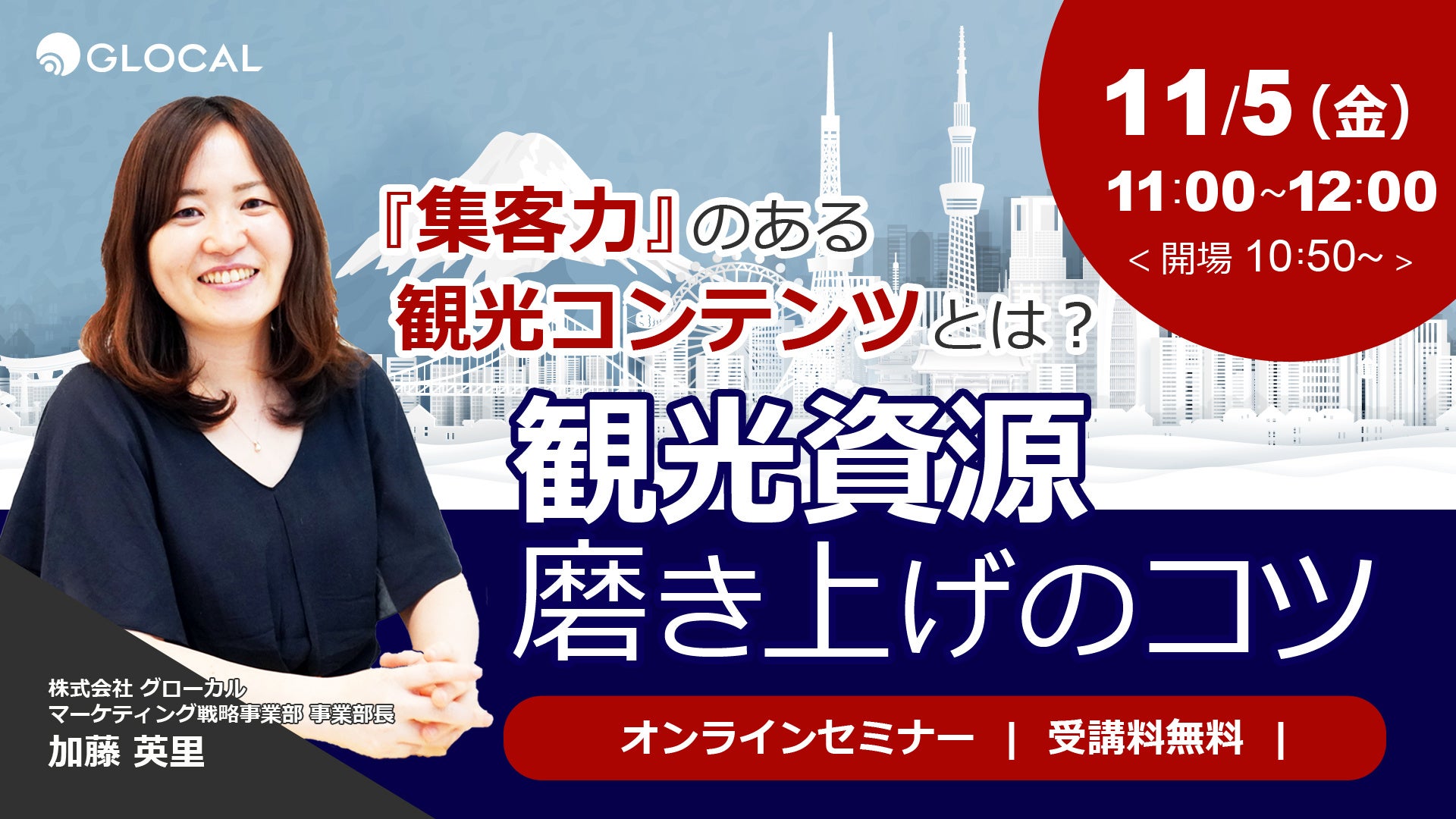 本セミナーでは、知名度のある地方都市から人口2,000名規模の小規模市町村まで、規模問わずシティプロモーションの支援を行ってきた株式会社グローカルが、地域のブランド力に依存しない移住プロモーションについて、成功のポイントをご紹介します。