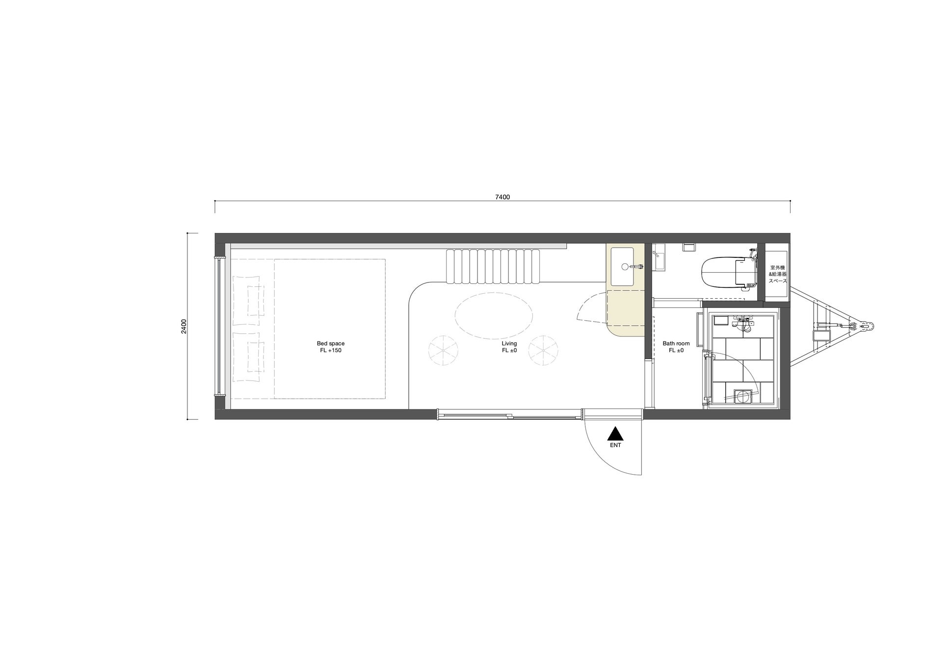 タイニーハウスの持つ様々な場所に運べる・設置できるという魅力を、空間力の高さとカスタマイズ性によって最大化した、これまでにない宿泊体験を形にすることができるモデルとなっています。