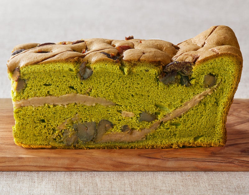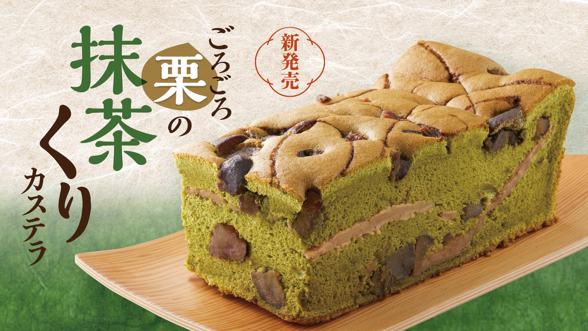 香り高い国産抹茶を使用したカステラ生地に、渋皮栗をトッピングし、リッチな味わいのフランス産マロンクリームをたっぷりサンドしました。