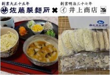 創業大正15年の老舗製麺所『佐藤製麺所』が伝統製法で作ったちゃんぽん麺で『つけちゃんぽん』を開発しました。その『つけちゃんぽん』と創業明治37年の老舗『井上商店』の鯨とコラボした『長崎鯨つけちゃんぽん』です。