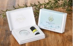 やきものの里・長崎県波佐見町で、作陶過程で出る石膏型の再利用の取組における地域内循環デザインの第1号企画商品です。粉砕した石膏型を土壌改良剤として撒いた休耕田で米粉用米を栽培し、最新の湿式気流粉砕機で製粉。地元の加工所が地域食材と組み合わせた米粉クッキーに加工して、波佐見焼の陶箱に詰め合わせ、地元企業製のオリジナル化粧箱に入れた、オール波佐見で取り組んでいる商品です。