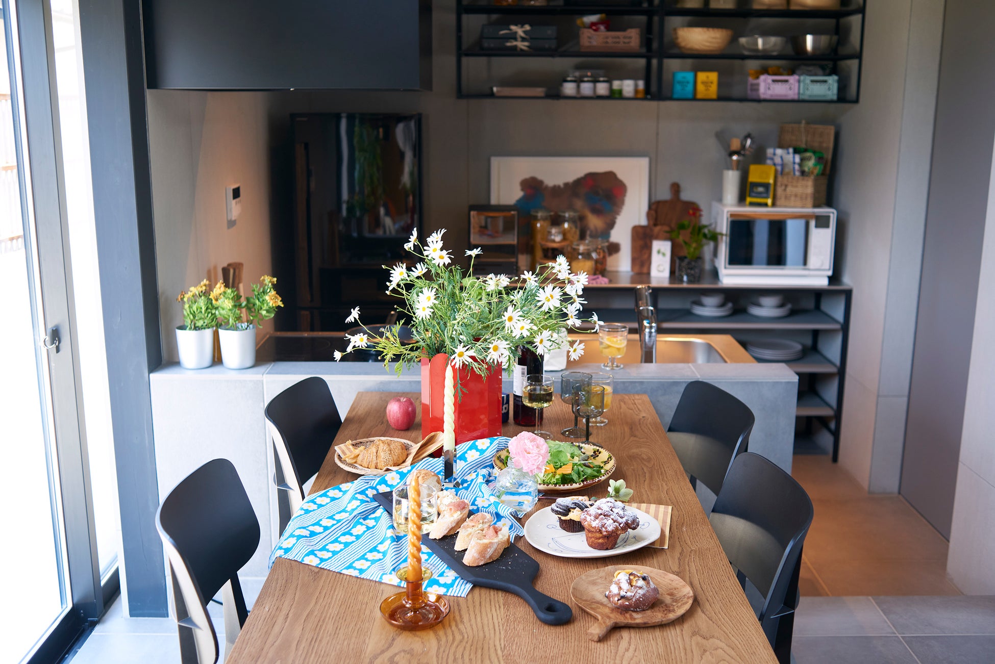 そして今回、音楽好きの家族が暮らすならをテーマに”好き間“を表現。広めのカウンターボードに、DJブースを設置。生活の中で常に心地い良い音楽が家中を満たし、家族や友人が自然と集まる家。この空間により住宅とエンターテインメントを掛け合わせた心躍る心地よい暮らしを提案します。