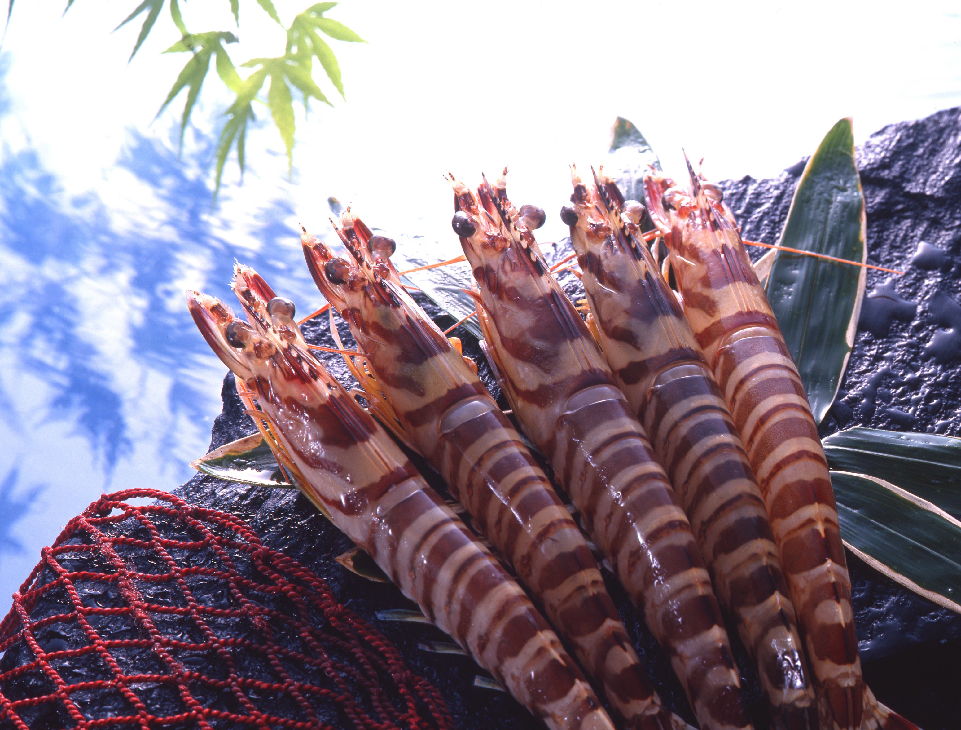 瀬戸内海が太平洋と合流する豊後水道・豊後灘は海の幸の宝庫です。姫島村はキツネ踊りで有名で、伝説を秘めた七不思議や景勝地も多い島です。その姫島村では、塩田跡地でクルマエビの養殖が行われています。「姫島車えび」は、大分県の代表的な特産品として全国に知られており、国内でもトップクラスの規模と生産量を誇ります。熟練の職人に選別され、活き〆仮死状態にしてから丁寧に真空パックに詰め、急速冷凍するため、解凍時の細胞破壊が減り、車えびのうまみが漏れないので、時間が経っても美味しく食べられます。