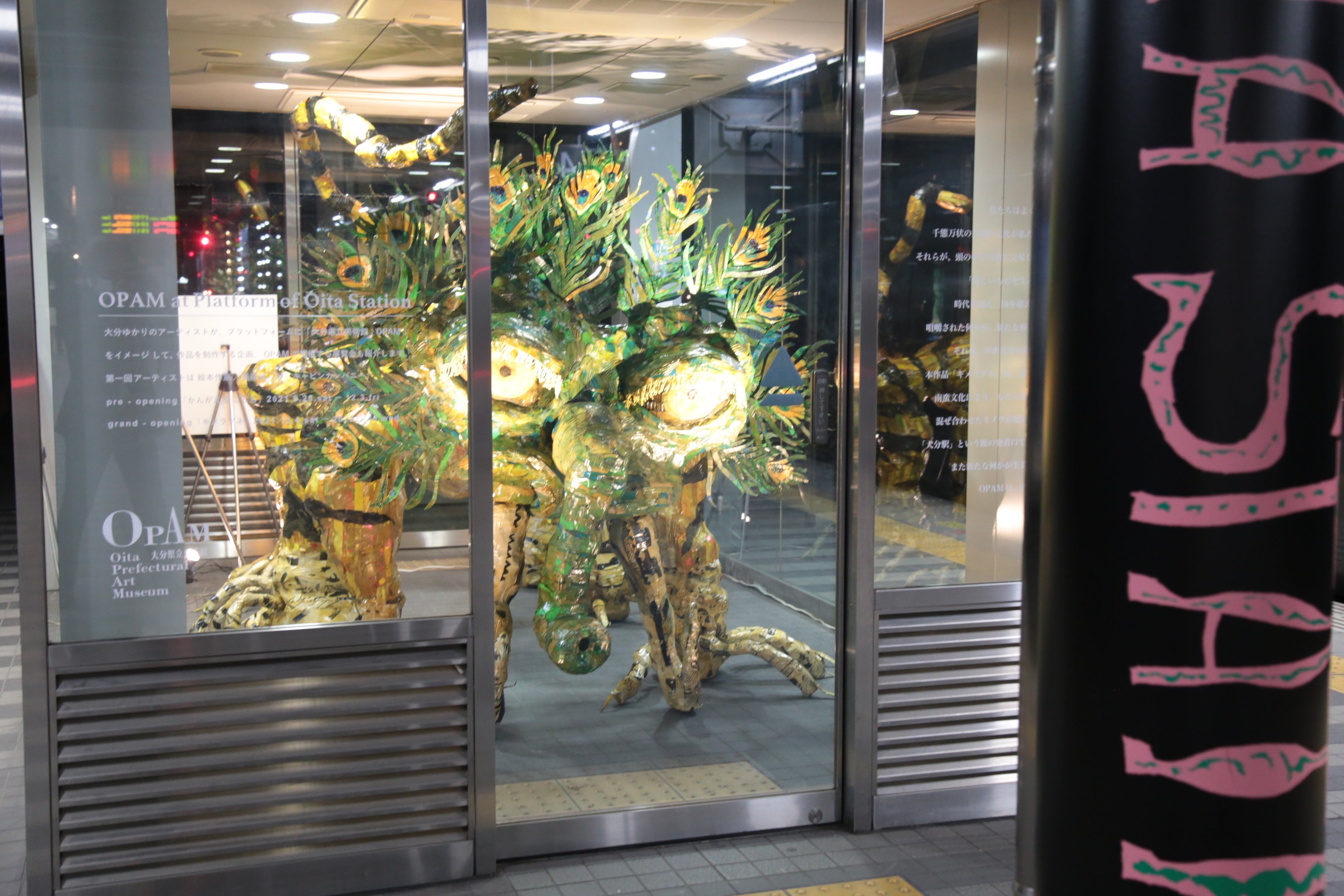 JR大分駅3・4番線ホームの元喫煙スペースを活用して展開する、「大分県立美術館(OPAM)」とJR大分駅との共同企画「OPAM at Platform of Oita Station」の展示が大迫力と話題になっています。本企画は大分ゆかりのアーティストが、JR大分駅のプラットフォームにOPAMをイメージして、作品を制作する企画です。12月4日(土)から3月30日(水)までは、二人組の絵本作家・美術家である、「ザ・キャビンカンパニー」が制作した「キメラブネ」を間近で見ることができます。