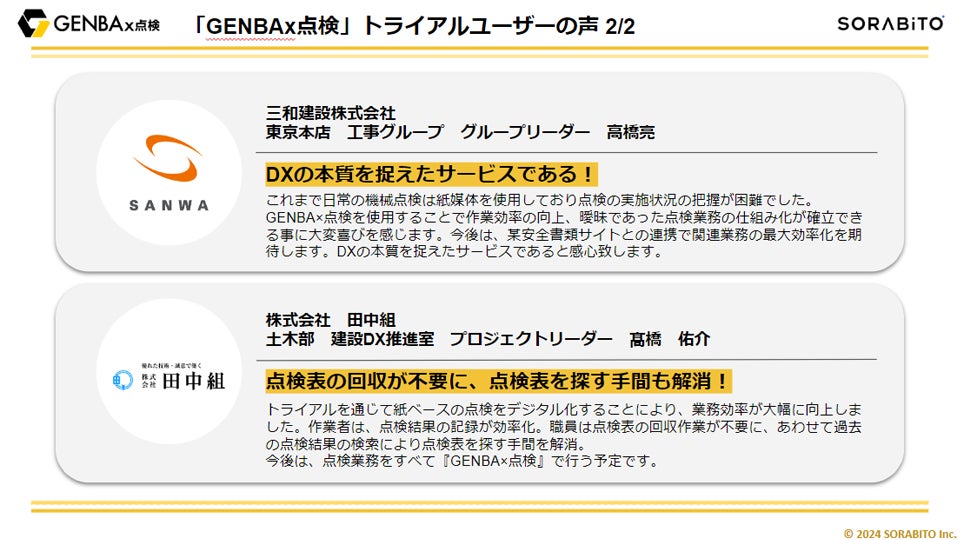 SORABITO、建設現場のあらゆる点検表をペーパーレス化する新プロダクト「GENBAx点検」を正式ローンチ