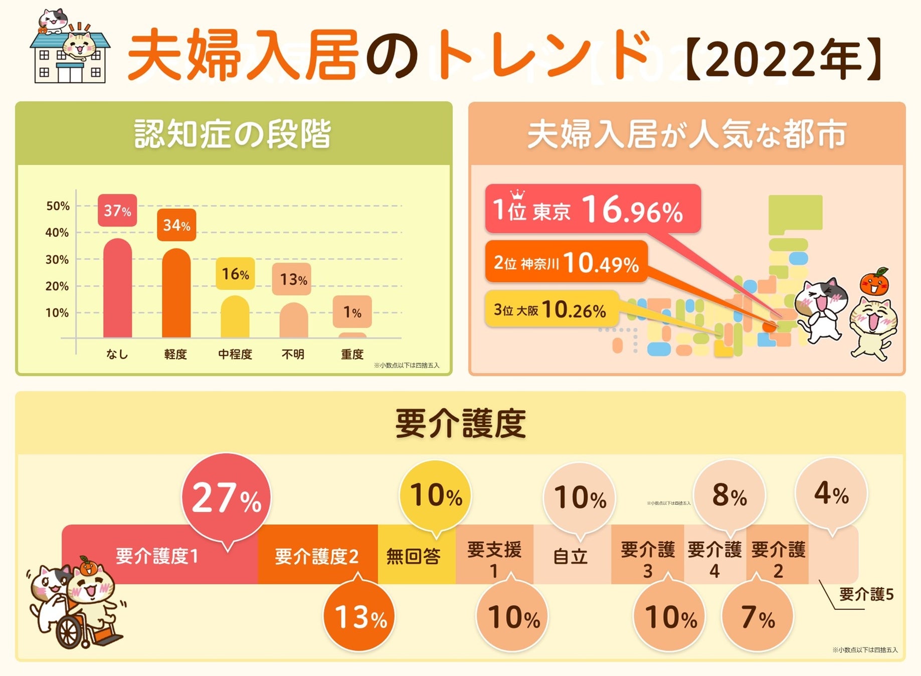 人気の秘密を知るべく、施設見学を行った夫婦入居希望者へ実施したアンケート(※)をもとに、夫婦入居のトレンドを調査しました。