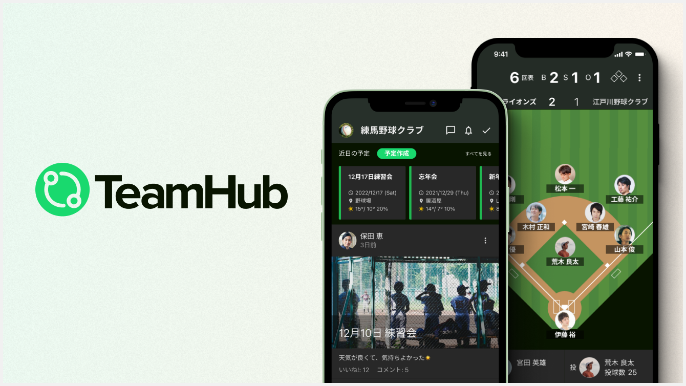 TeamHubはスポーツをするひとが抱えるチーム運営の負担を減らし、もっとスポーツをする時間にあてて欲しいという思いから生まれたアプリです。