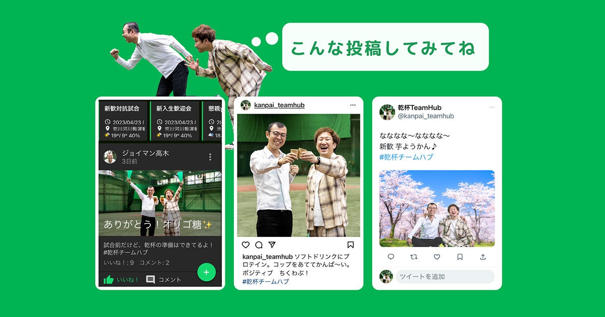 なななな〜 なななな〜 投稿しようよ〜。スポーツチーム応援アプリTeamHub、「チームを応援!春の乾杯投稿キャンペーン」開催中!