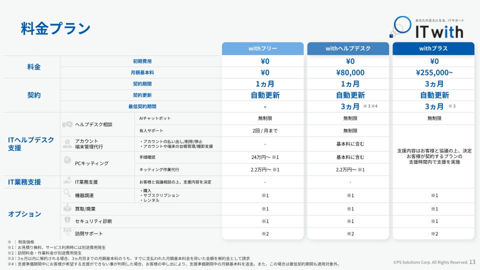 ※withフリープラン、withヘルプデスクプランともにPCの調達やキッティングなどのオプションを追加することができます。