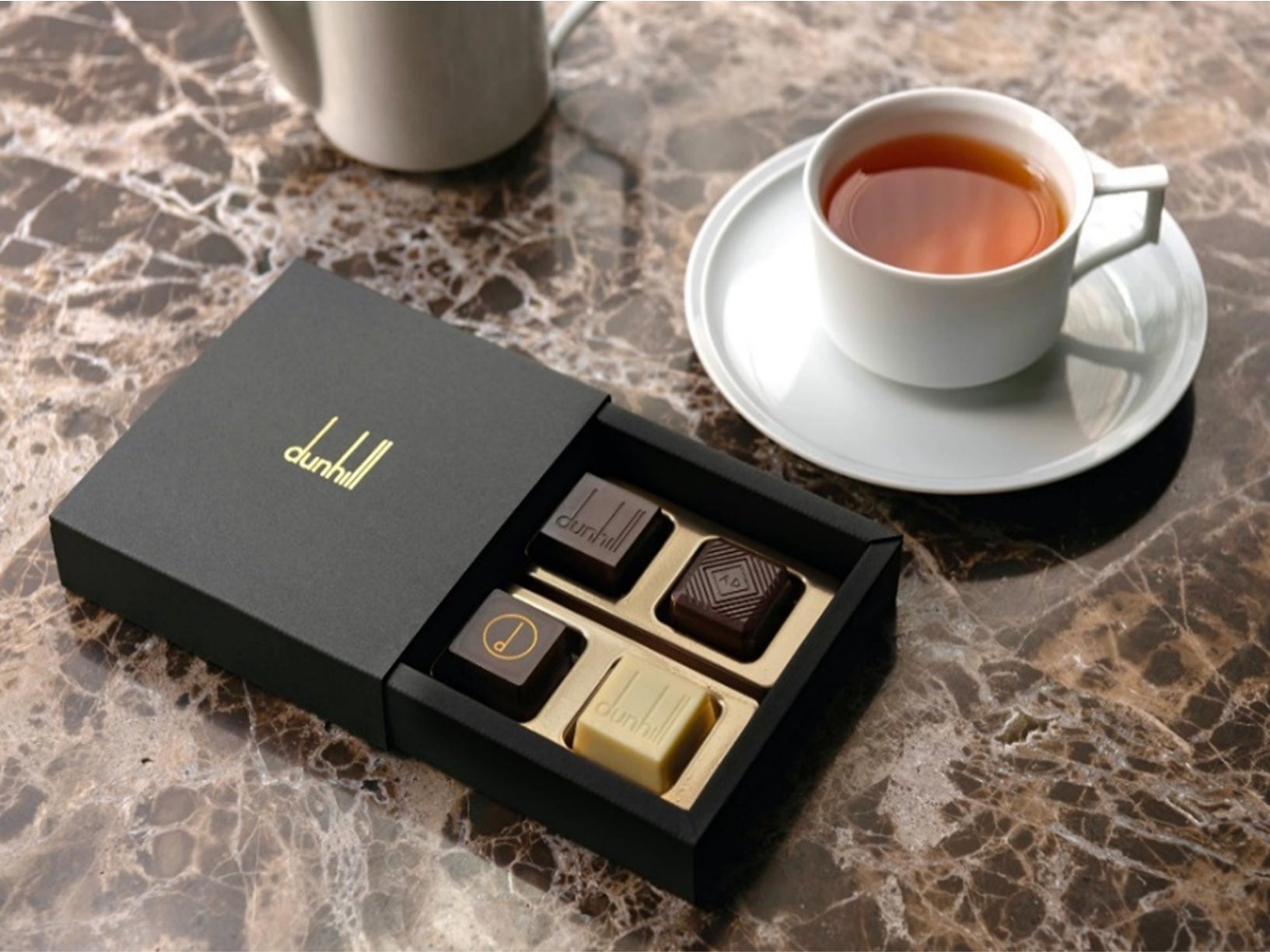 世界でもダンヒル銀座本店でしか手に入れることができないチョコレートボックス。4つのフレーバーが楽しめる、洗練されたチョコレートボックスです。
