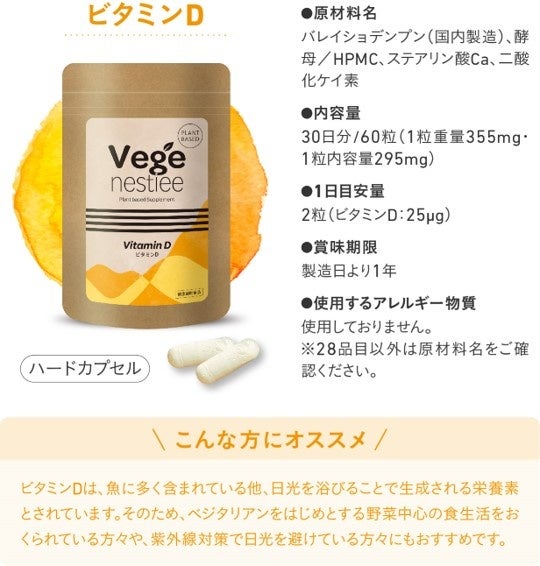 ~サプリメントにも“プラントベース”という選択を。~動物由来の原材料を使わずに作り上げた“プラントベース”サプリメント「Vege nestiee」