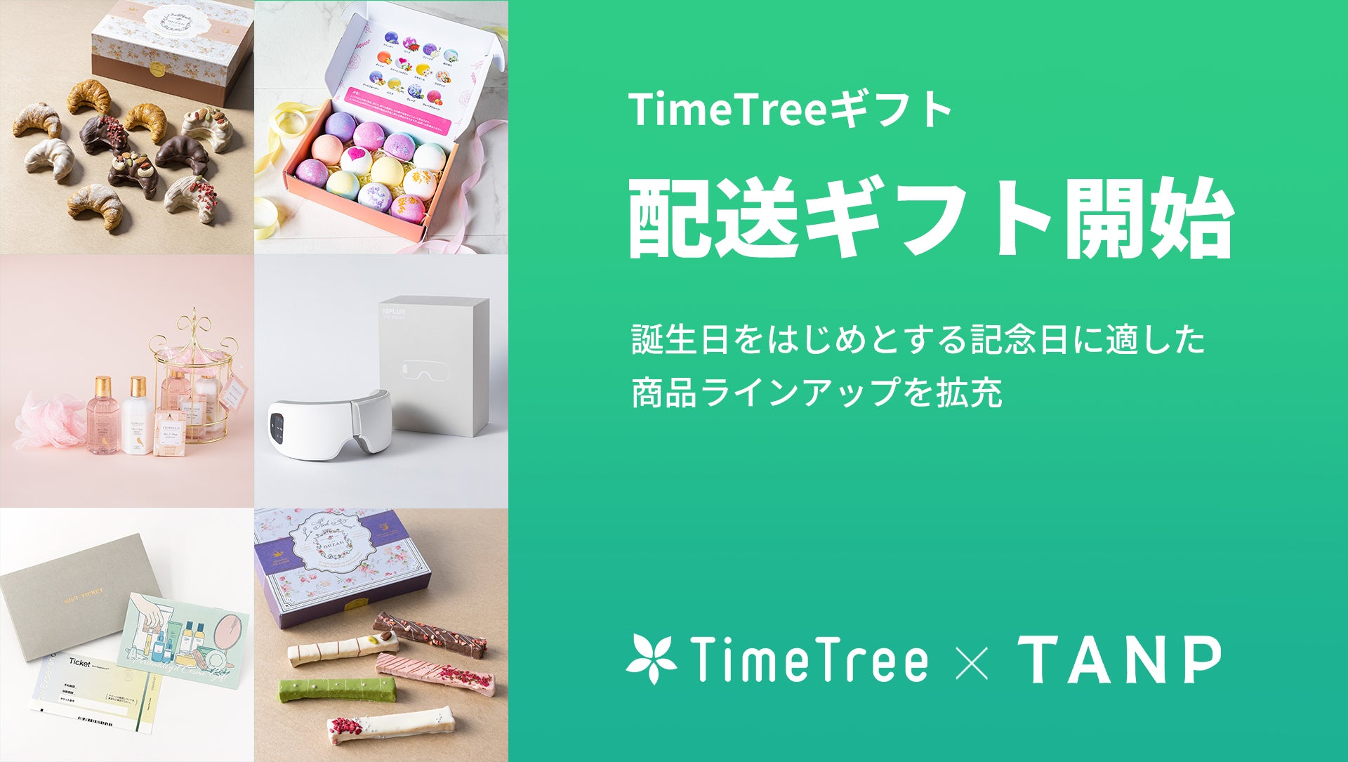 TimeTreeギフト、日本最大級のギフト専門通販「TANP」と連携して「配送ギフト」の提供を開始
